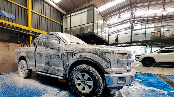 Prelavado para eliminar la mugre gruesa sobre la pintura, enjuague exterior, aplicación de sellador de polímeros por el cual brinda mayor protección y brillo que una cera convencional, otorgando excelente repelencia hidrofóbica hasta por 6 meses.